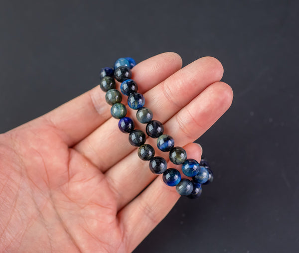 Dark Tiger Eye Round Size 6mm and 8mm- Handmade In USA- Precharged- 7.5" Length Bracelet Crystal Bracelet