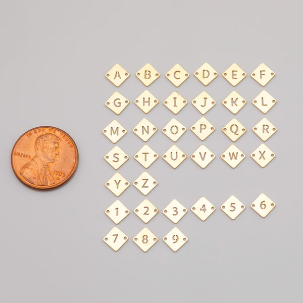 Diamond Letter Connectors 14K Gold Filled Made in USA 8mm Alphabet Number Connector for Bracelet - Initial Charm Permanent Jewelry Supplies