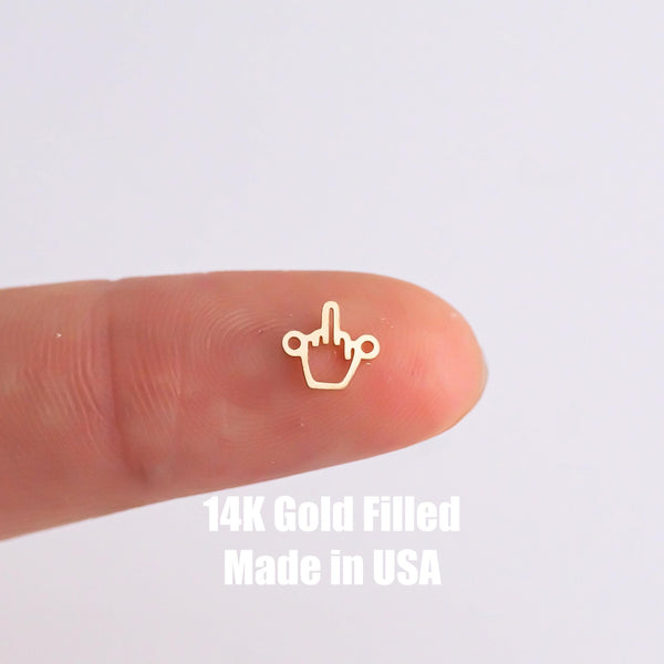 gold filled Fuck Middle Finger - sterling silver or gold filled- permanent jewelry word connectors- charm, pendant