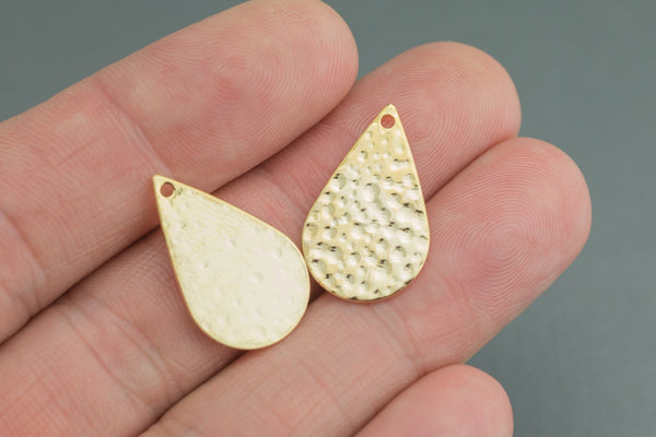 Gold Pendant Drops- Hammered Gold- Light and Delicate- 4 Pieces per order- 14x22mm SKU Ta8