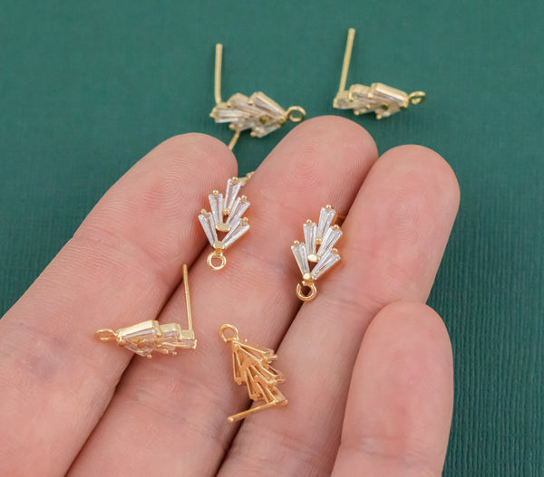 Gold Plated Brass Cactus Zircon Earring Post -Brass earring shape earring connector Pendant Brass earring findings jewelry supply sx1
