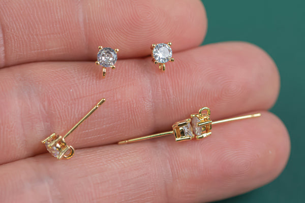 Gold Plated Brass CZ Stud-4mm Earring Post -Brass earring shape earring Pendant Brass earring findings jewelry supply
