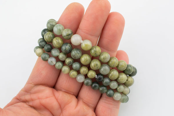Green Rutilated Quartz Smooth Round Size 6mm and 8mm- Handmade In USA- approx. 7" Bracelet Crystal Bracelet