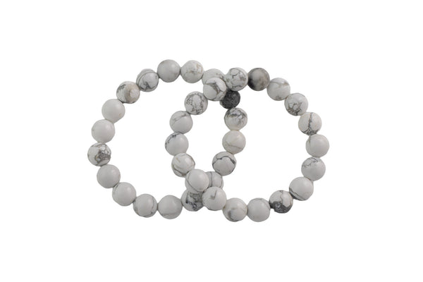Howlite- BRACELETS NATURAL Gemstone 8mm Smooth Stackable Round Gemstone Jade Bracelets - Handmade - WHOLESALE - 8mm 7” - 7.5" Bracelet