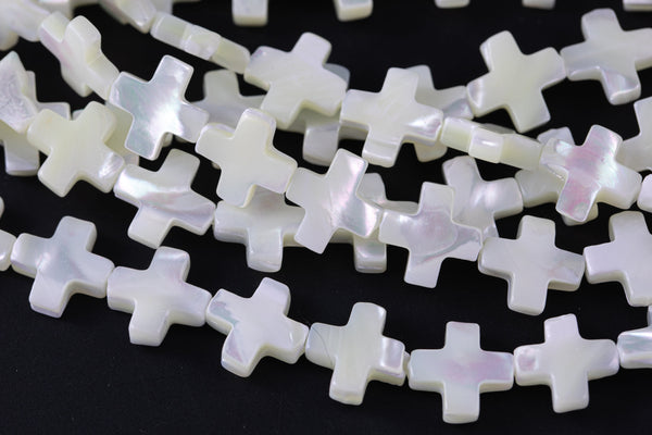 Iridescent White Mother of Pearl MOP Shell cross Beads- 8mm - 12mm- 5.5'' Strand Shell Beads