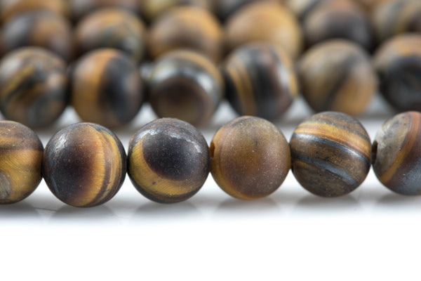 LARGE-HOLE beads!!! 8mm or 10mm Matte -finished round. 2mm hole. 7-8" strands. Smooth Tiger's Eye. Tiger eye. Big Hole Beads