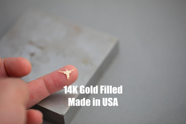 Our products are meticulously crafted from scratch, designed, and manufactured in our studio located in Houston, Texas. We exclusively utilize double-clad 14 karat gold filled sourced from the USA, ensuring superior quality. We do not plate our items afterwards however, we utilize state-of-the-art quarter-million dollar machinery, guaranteeing exceptional durability and longevity. Typically, our production timeline spans 4-7 business days. For custom or wholesale inquiries, please don't hesitate to reach out to us. We're more than happy to assist you.