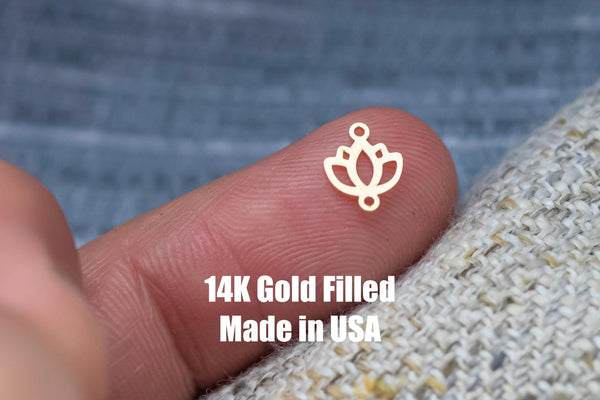 Lotus Leaf Bud Flower Permanent Jewelry Connector or Charm- Intricate Detail - 14kt gold filled or Sterling Silver - Made in the USA