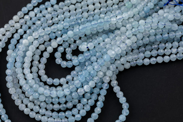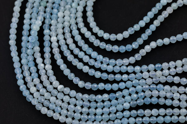 Natural Aquamarine Beads Full Strands 15.5 inches-4mm- Nice Size Hole-Clear-Diamond Cutting, High Facets-Nice Sparkly-Faceted Round