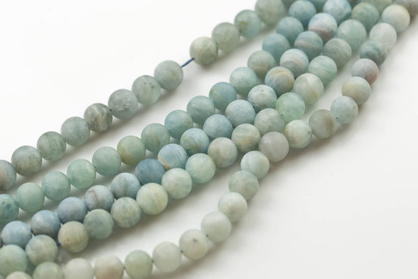 Natural aquamarine Matte round beads in full strands. 4mm, 6mm, 8mm, 10mm, 12mm, 14mm, 16mm AAA Quality Smooth Gemstone Beads