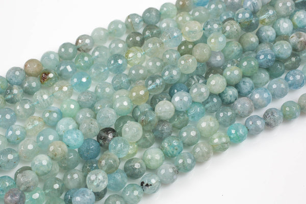 Natural Clearish Blue aquamarine faceted round beads in full strands-Full Strand, 4mm, 6mm, 8mm, 12mm, or 14mm Beads. Gemstone Beads