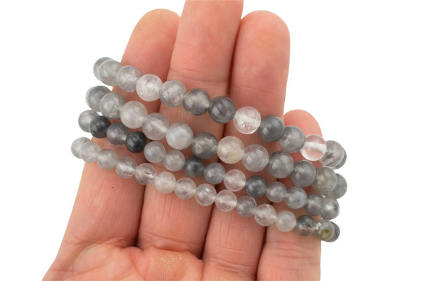 Natural Cloudy Quartz Smooth Round Size 6mm and 8mm- Handmade In USA- approx. 7" Bracelet Crystal Bracelet