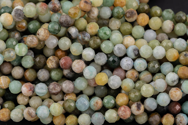 Natural Flower Jade Beads Full Strands-15.5 inches-6mm Nice Size Hole-Diamond Cutting, High Facets-Nice and Sparkly-Faceted Round