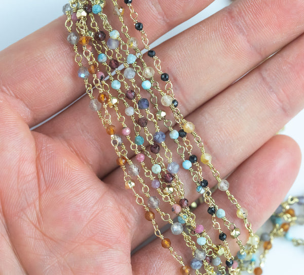 Natural Gemstone Beaded Chain Labradorite Spinel Rhodonite Aquamarine Yellow Opal Garnet Turquoise Hessonite Aquamarine 2mm sold by foot