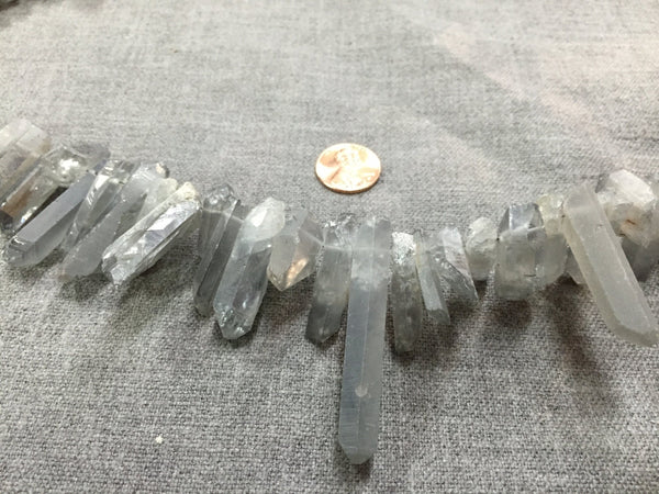 Natural Gray Quartz Freeform. Approximate 40mm Long. Full Strand 16". Gemstone Beads