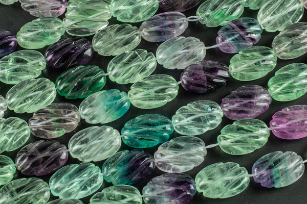 Guaranteed genuine 100% natural fluorite not treated anyway... These are some of the most beautiful carved fluorite beads you can find on the market... Each bead is hand-carved all the way around with intricate detail!