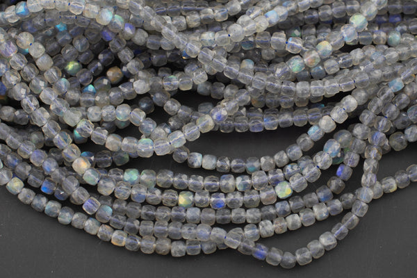 Natural Labradorite Faceted Cube Beads Size 4mm 15.5" Strand