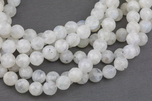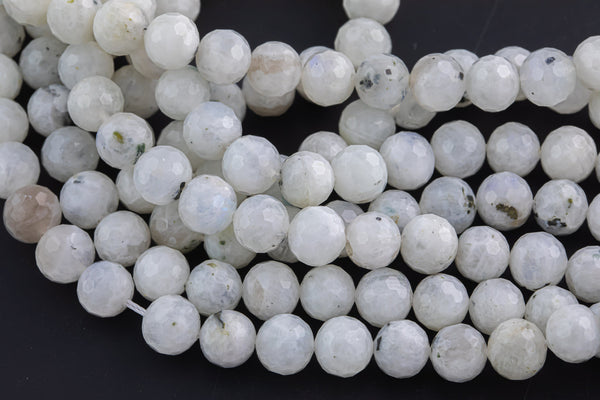 Natural Moonstone Beads Diamond Cut Facets 6mm 8mm Rainbow Moonstone Gemstone Loose Beads 15.5" - 16" full strands AAA Quality