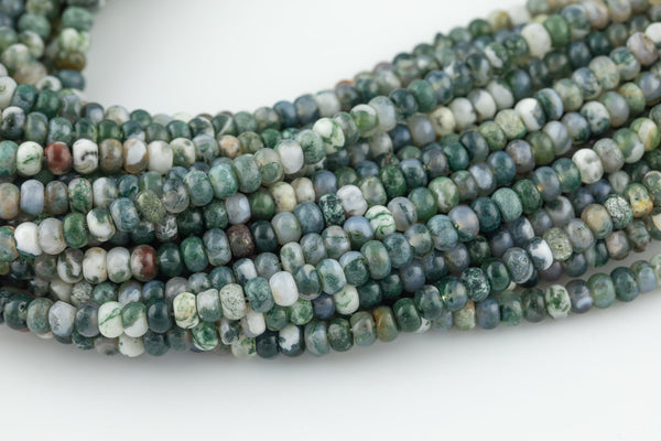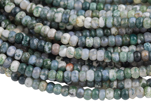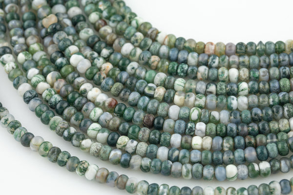 Natural Moss Agate High Quality in 6mm and 8mm Roundel- Full 15.5 Inch Strand AAA Quality Smooth Gemstone Beads