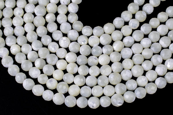 Natural Mother of Pearl, High Quality in Faceted Round Gemstone Beads Shell Beads
