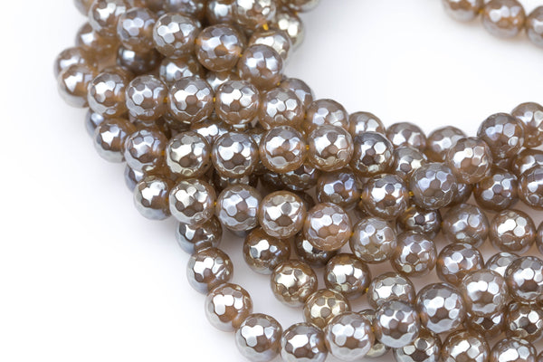 Natural Mystic Champagne Agate, Faceted Round sizes 4mm, 6mm, 8mm, 10mm, 12mm- Full 16 inch strand Gemstone Beads