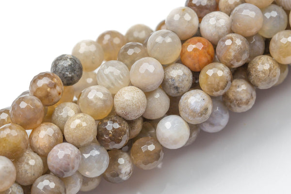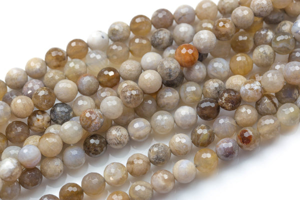 Natural Ocean Fossil Agate- Facted Round sizes. 4mm, 6mm, 8mm, 10mm, 12mm, 14mm Gemstone Beads