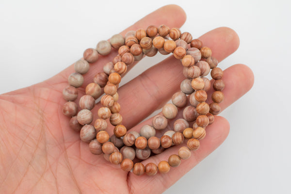 Natural Pink Banded Jasper Smooth Round Size 6mm and 8mm- Handmade In USA- approx. 7" Bracelet Crystal Bracelet