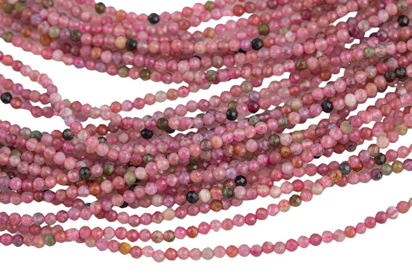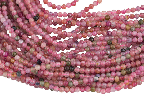 Natural Pink Tourmaline Beads Full Strands-15.5 inches-2.5mm- Nice Size Hole- Diamond Cutting High Facets- Nice and Sparkly- Faceted Round