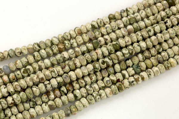 Natural Rhyolite Rain Forest Jasper Faceted Roundel Full Strand , 8mm- Full 15.5 Inch Strand Gemstone Beads