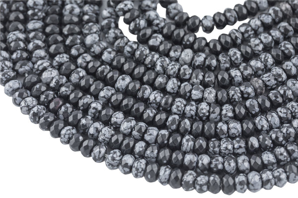Natural Snowflake Obsidian High Quality in Faceted Roundel, 6 and 8mm- Full 15.5 Inch Strand-Full Strand 15.5 inch Strand Gemstone Beads