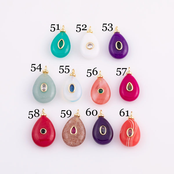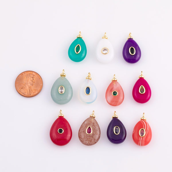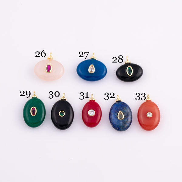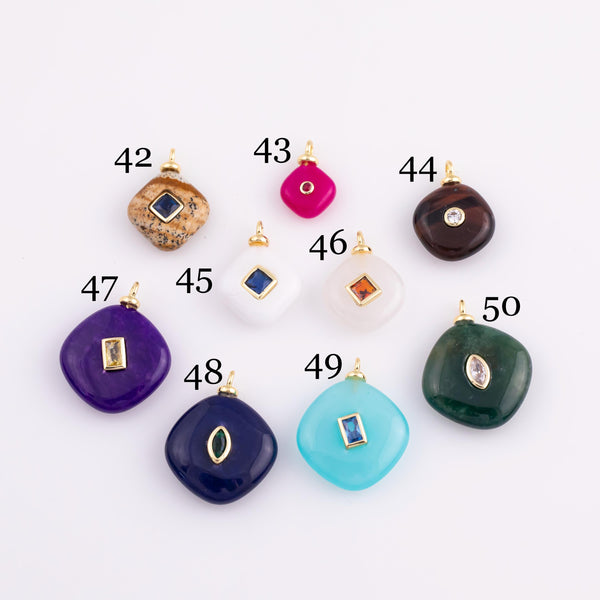 Natural stone pendant charm with crystal in the middle - gold plated brass bail