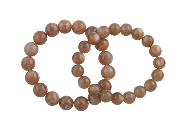 Pinkish Moonstone Smooth Round Size 6mm and 8mm Handmade In USA Natural Gemstone Crystal Bracelets Handmade Jewelry - approx. 7"