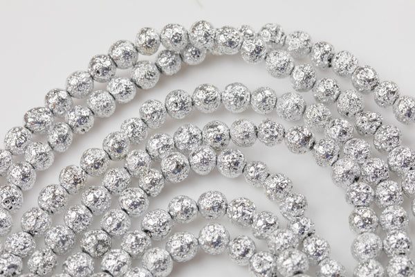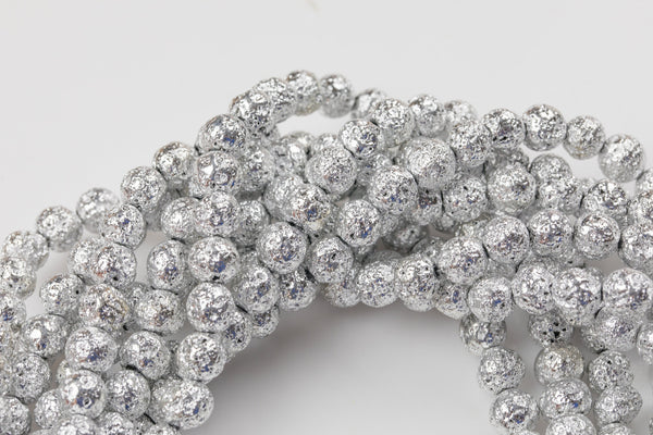 Platinum White Gold Plated Lava Rock Round Beads- Wholesale Bulk - Full 15.5 Inch Strand, 4mm, 6mm, 8mm, 12mm, or 14mm Beads