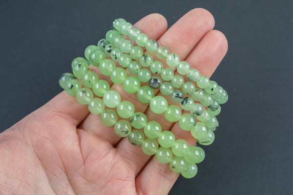 Prehnite Garnet Green Garnet Bracelet Round Size 6mm and 8mm - Handmade In USA - Natural Gemstone Bracelets - Handmade Jewelry - approx. 7"