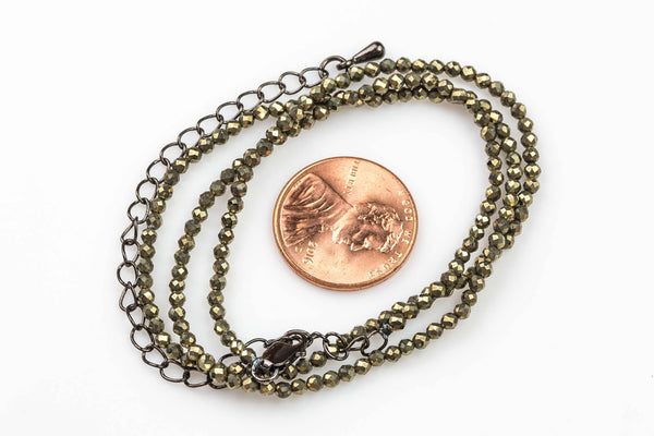 PRESTRUNG Tiny 2mm Diamond-Cut Gemstone Necklaces Chokers - 925 Sterling Silver-Made for adding custom charms/pendants-Pyrite