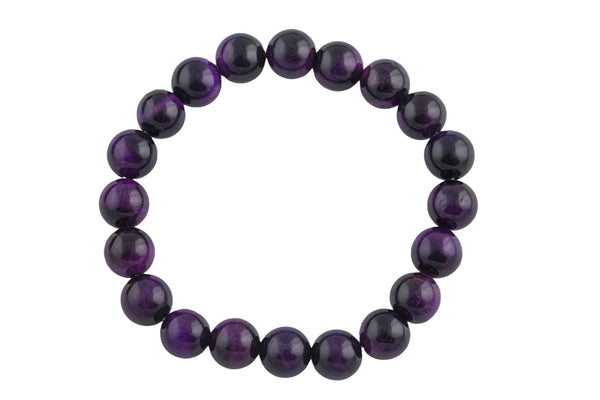 Purple Tiger's Eye Bracelet Round Size 6mm and 8mm - Handmade In USA - Natural Gemstone Crystal Bracelets - Handmade Jewelry - approx. 7"