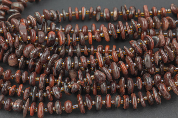 Red Tiger Eye Smooth Freeform Roundel Chip Beads 15.5" Strand