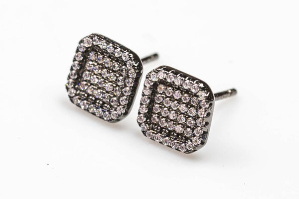 Square Sterling Silver Earring- Stud- Gold or Gunmetal- High Quality Micro Pave-Dainty and Light-0151