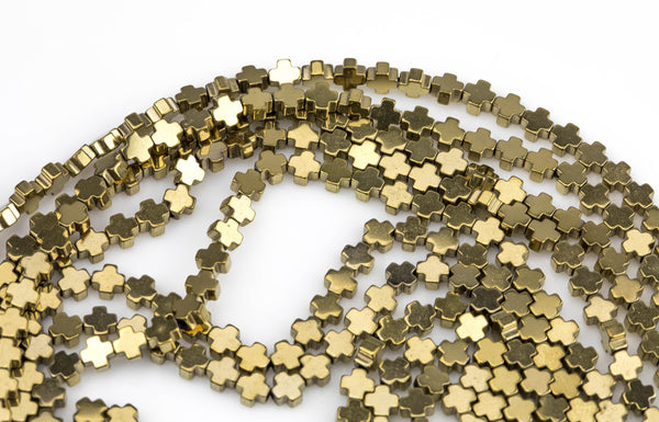 Titanium Pyrite- CROSS Hematite Strands- Light Gold- 4mm- Tiny Size