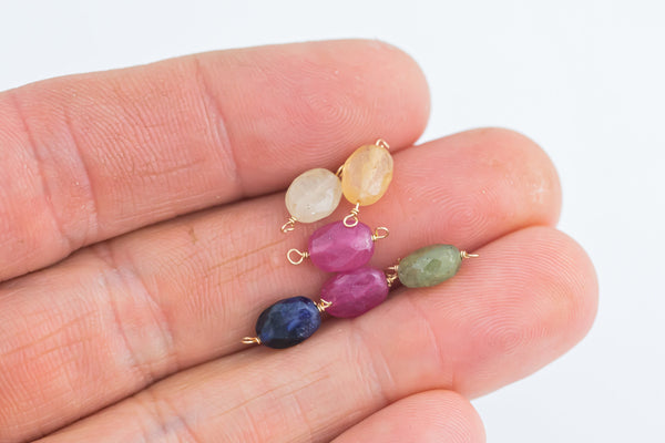 USA Gold Filled Permanent Jewelry Connectors Multi Color Sapphire Faceted Oval Gemmy Quality Connector or Charm 1420 Gold Filled