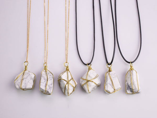 White Howlite Crystal Necklaces Handmade in USA Wire Wrapped Raw Natural Gemstone Crystal Necklace Handmade Jewelry Raw White Howlite