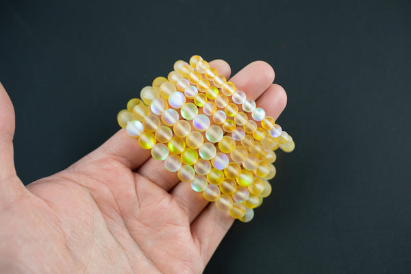 Yellow Mystic Aura Quartz Bracelet Round Size 6mm and 8mm- Handmade In USA Natural Gemstone Bracelets - Handmade Jewelry - approx. 7"