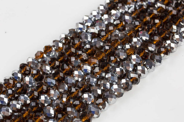 10mm Crystal Rondelle -1 or 5 or 10 STRANDS- Brown Topaz Silver