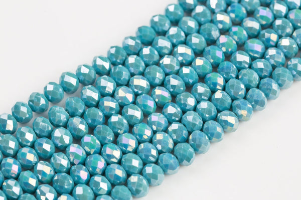 10mm Crystal Rondelle - 2 or 5 or 10 STRANDS- Mint Blue AB