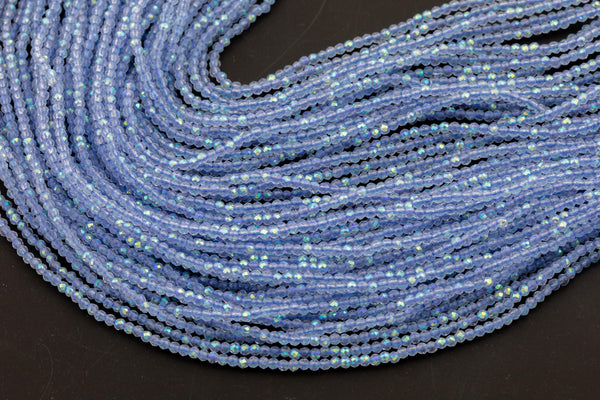 2mm or 3mm Crystal Round -2 or 5 or 10 STRANDS- Extra Fine-14 inches long about 100+ Beads - Light Blue AB