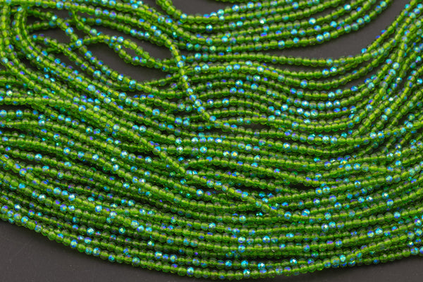 2mm or 3mm Crystal Round -2 or 5 or 10 STRANDS- Extra Fine-14 inches long about 100+ Beads - Olive AB