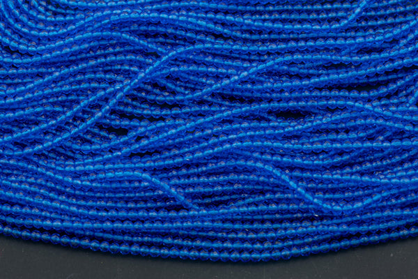 2mm or 3mm Crystal Round -2 or 5 or 10 STRANDS- Extra Fine-14 inches long about 100+ Beads -Azure Blue