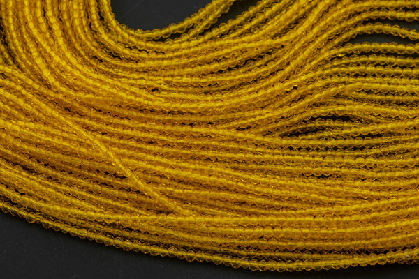 2mm or 3mm Crystal Round -2 or 5 or 10 STRANDS- Extra Fine-14 inches long about 100+ Beads - Dark Yellow