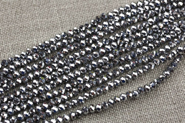 6mm Crystal Rondelle -1 or 5 or 10 STRANDS- Platinum SIlver