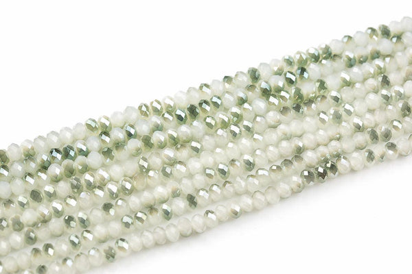 6mm Crystal Rondelle -1 or 5 or 10 STRANDS- Half Green Metallic